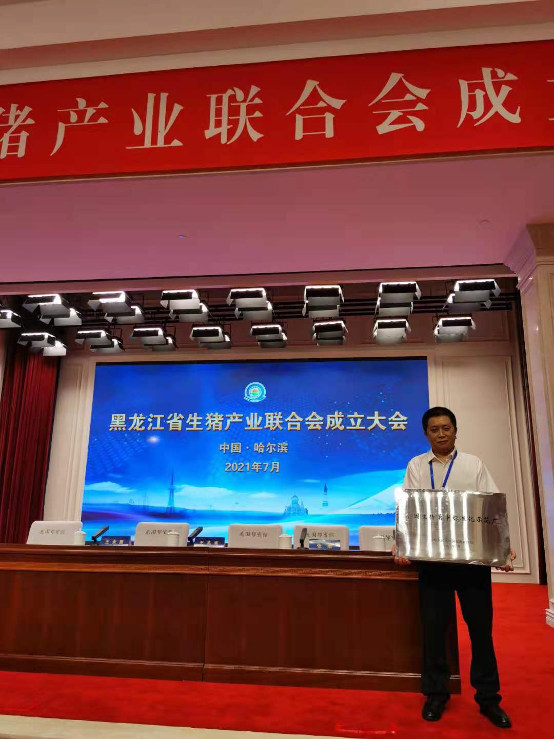 會(huì)上,省民政廳二級(jí)巡視員楊曉光宣讀了黑龍江省生豬產(chǎn)業(yè)聯(lián)合會(huì)批準(zhǔn)文件,舉行了生豬屠宰標(biāo)準(zhǔn)化企業(yè)授牌儀式,全省45家企業(yè)只有六家獲得此殊榮,其中有我們鑫鵬肉業(yè)有限責(zé)任公司,我公司同時(shí)榮獲聯(lián)合會(huì)副會(huì)長(zhǎng)單位榮譽(yù)稱號(hào)。公司法人代表張青參加了此次會(huì)議并領(lǐng)取了榮譽(yù)牌匾。